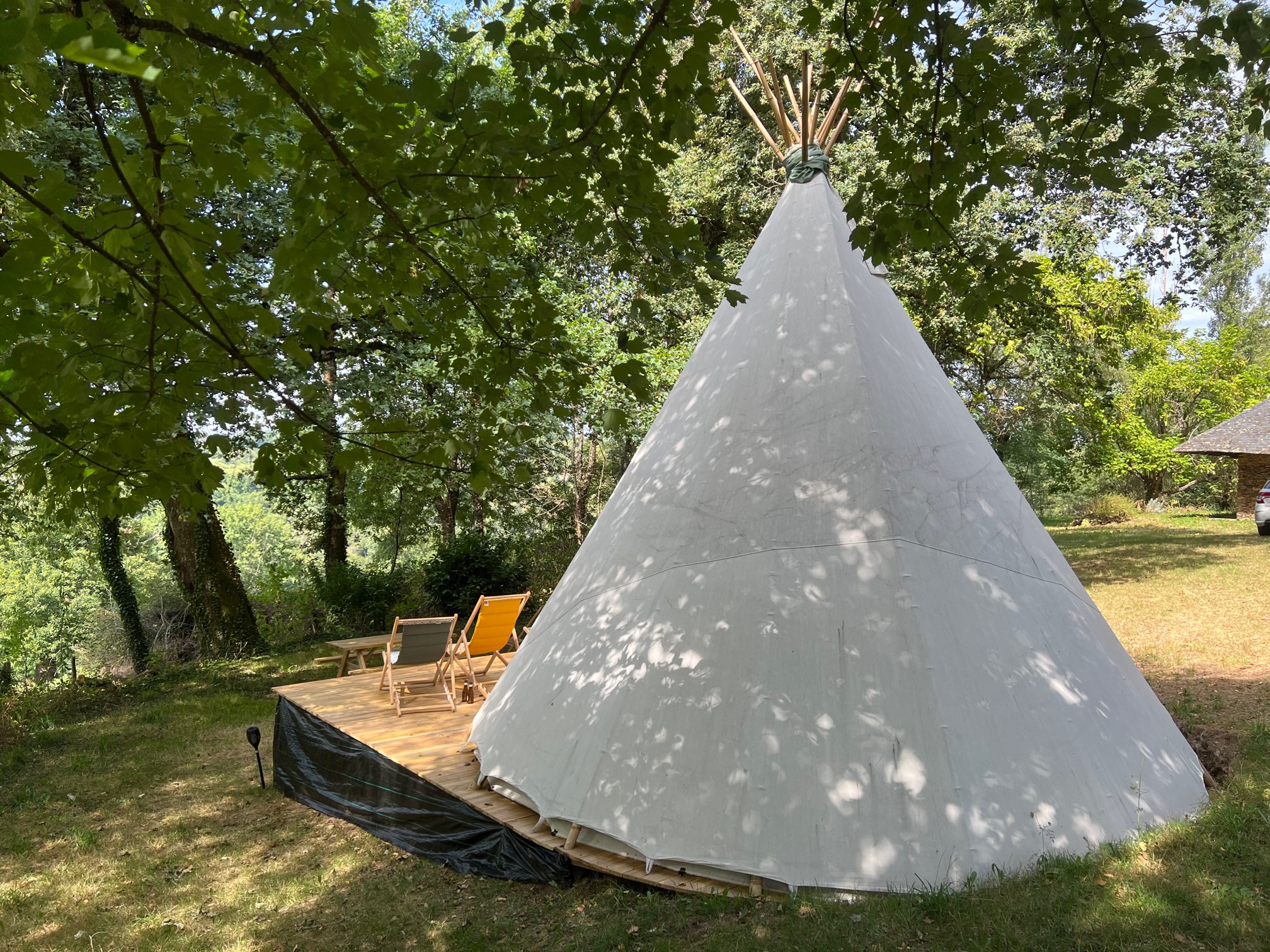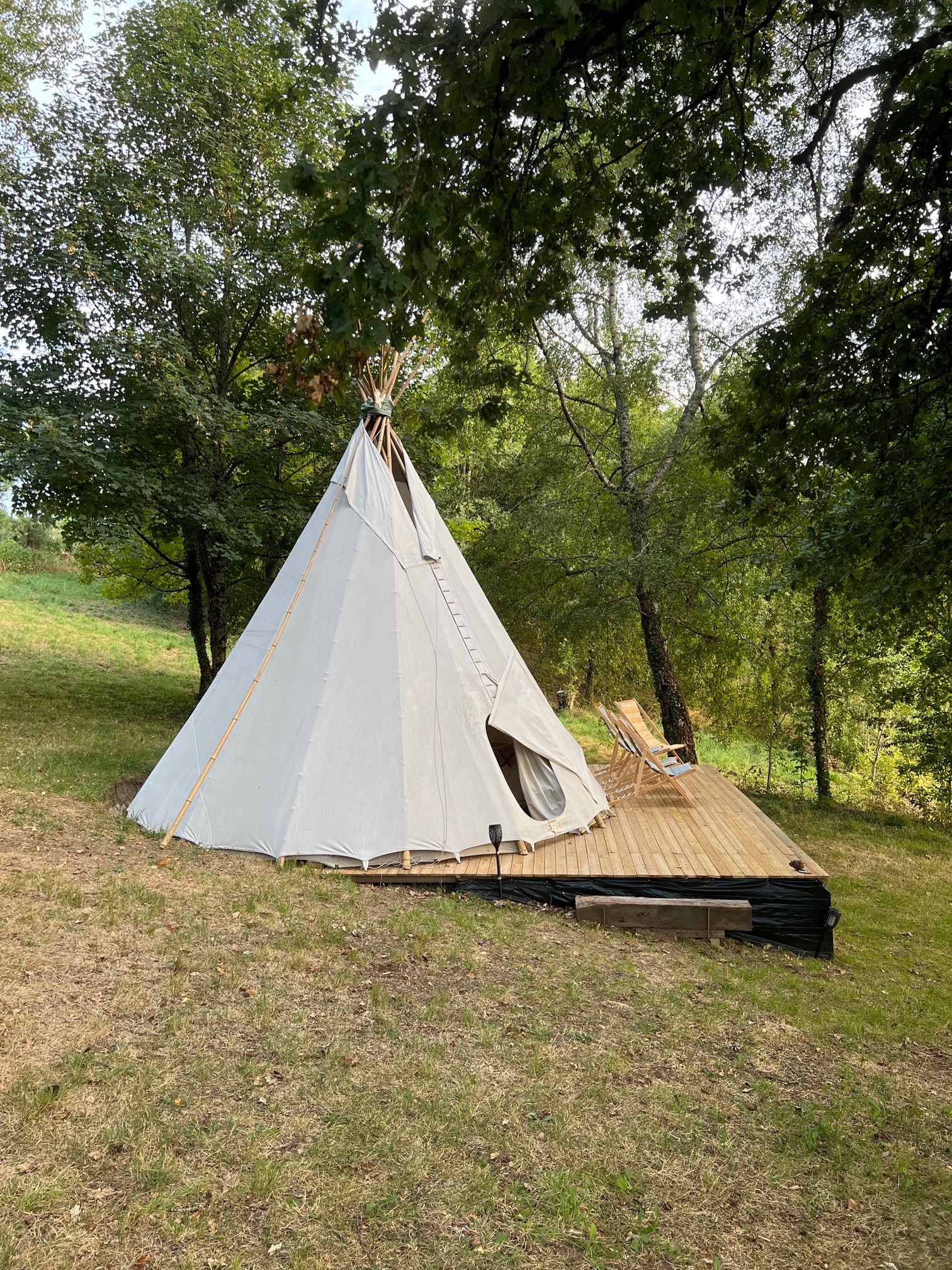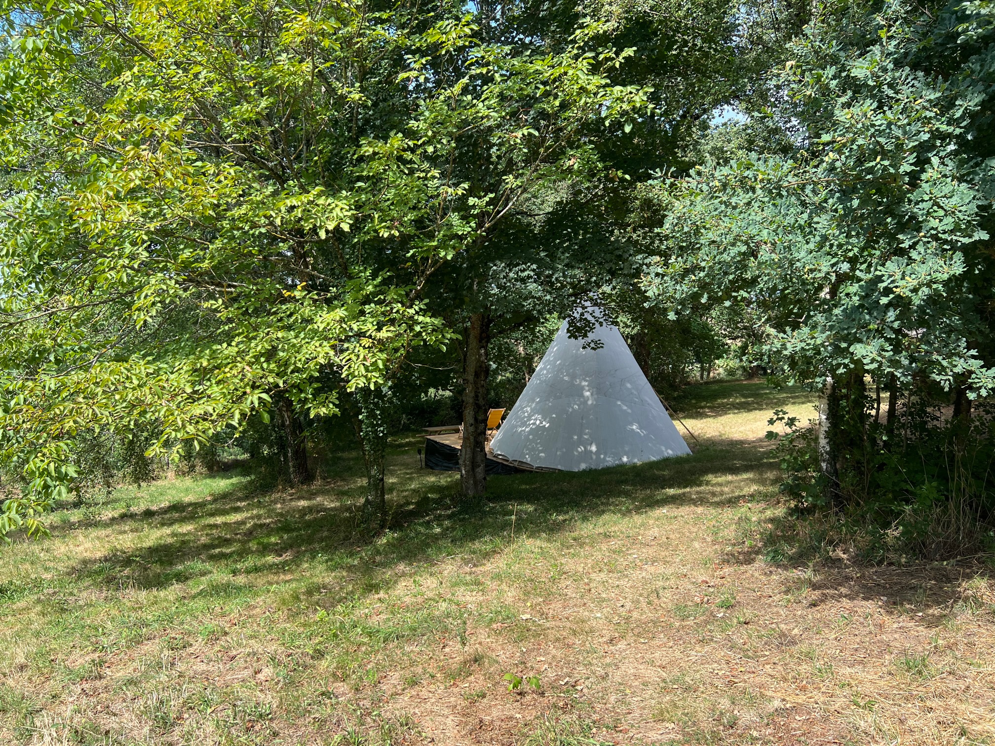 Grand Tipi de 20 m2 sur plancher de bois dans un cadre naturel et boisé, sans voisin