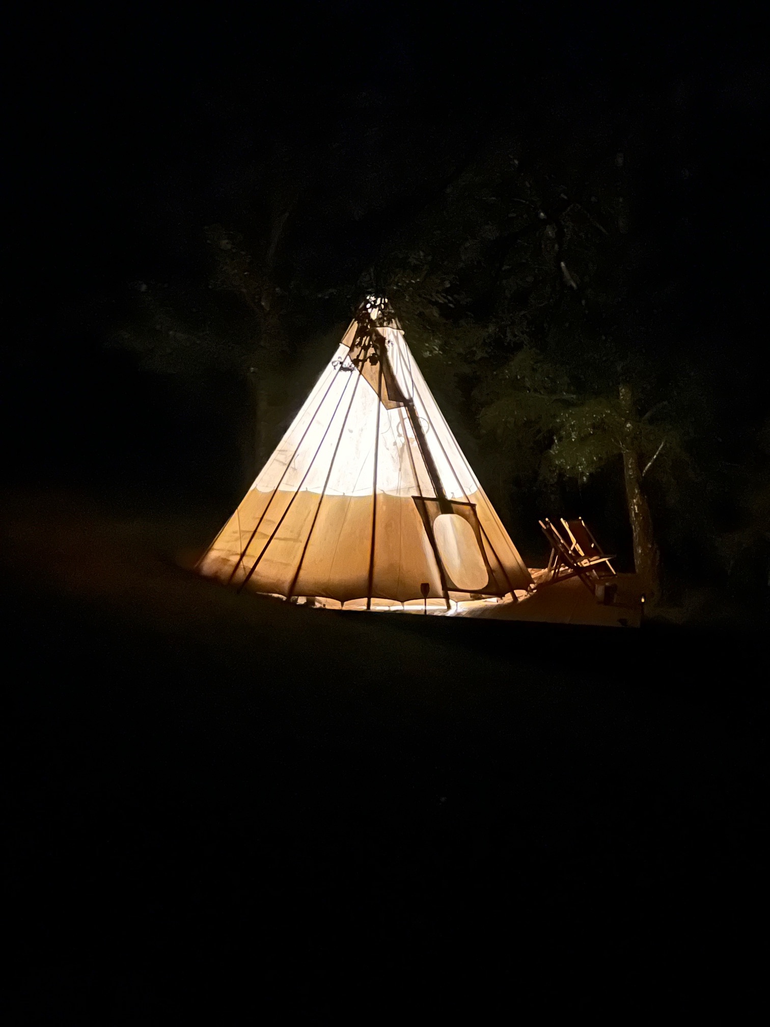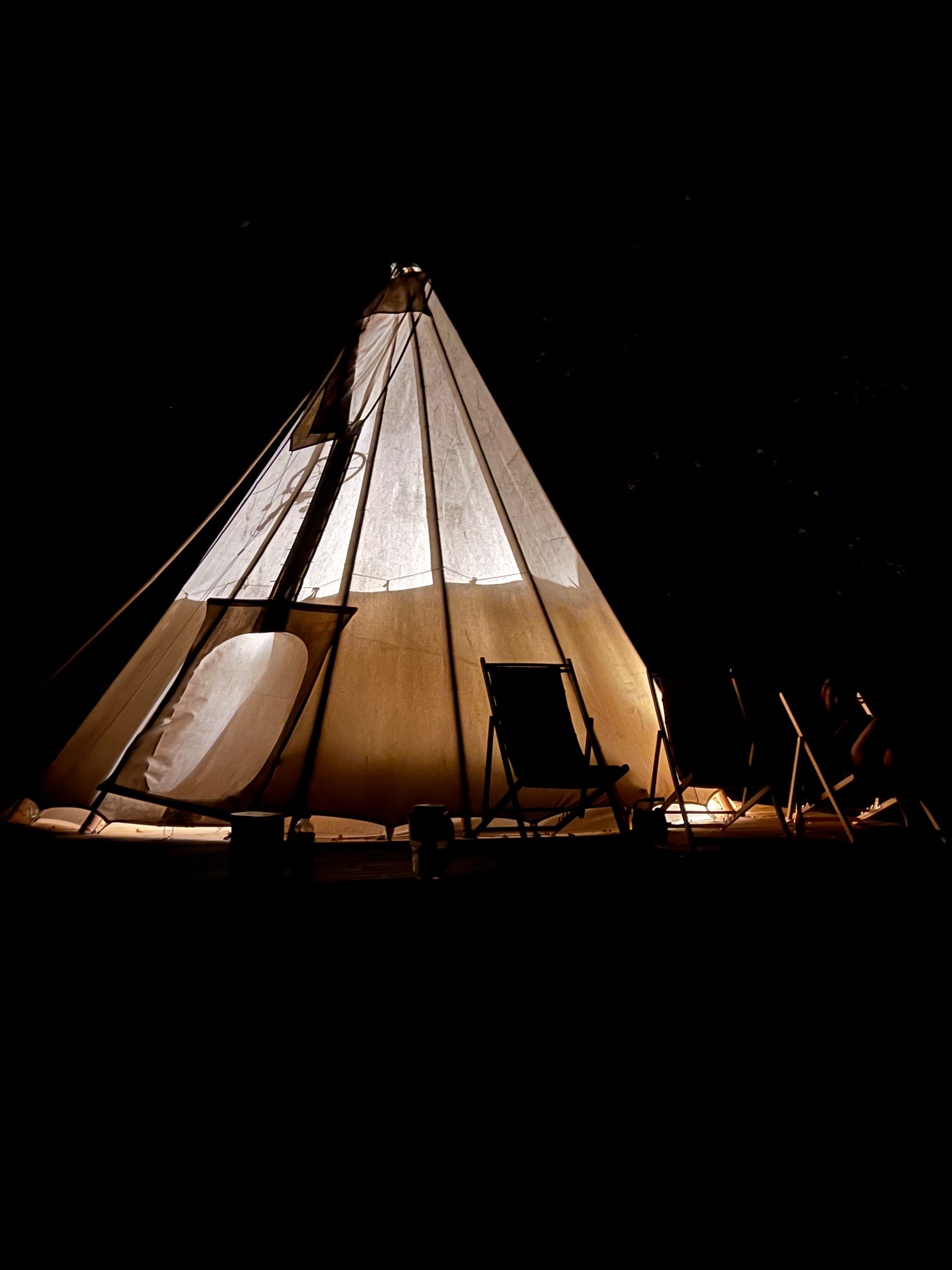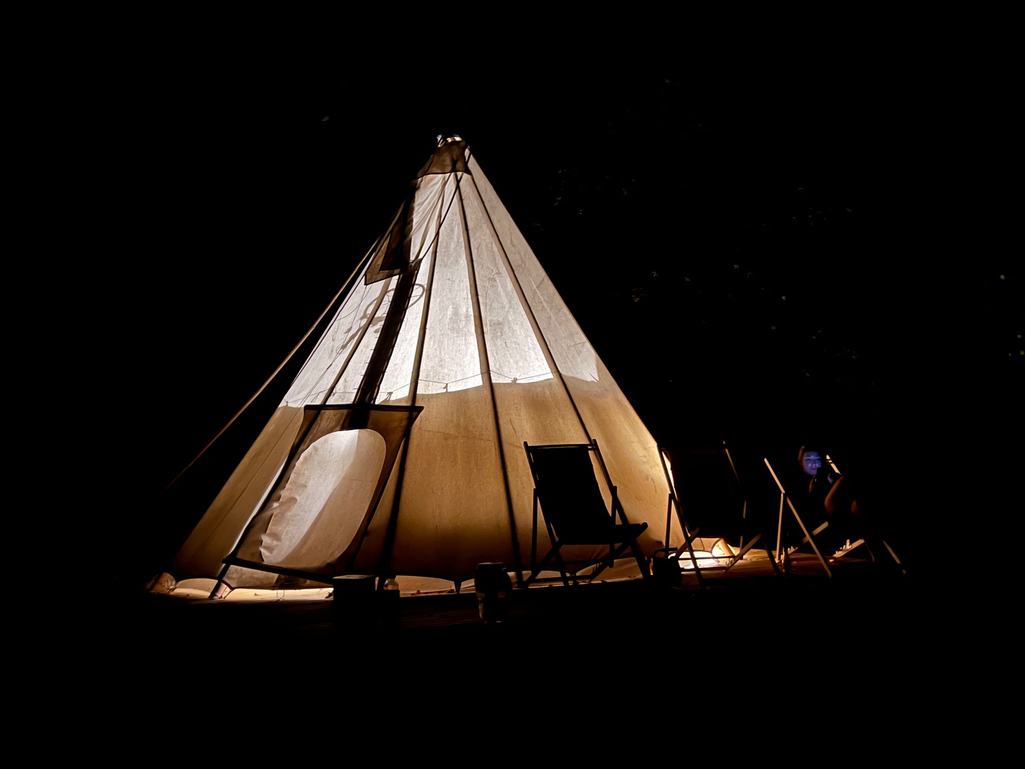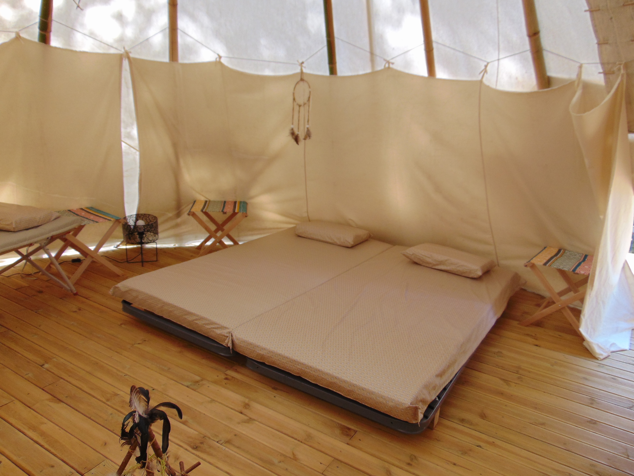 Grand Tipi de 20 m2 sur plancher de bois dans un cadre naturel et boisé, sans voisin