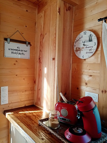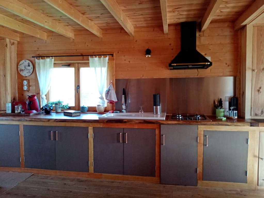 Le chalet est entièrement construit et équipé avec des materiaux "nobles", sans impact sur l'environnement et la santé. Les pièces de décoration ont été fabriquées par nos soins ou chinés avec passion.