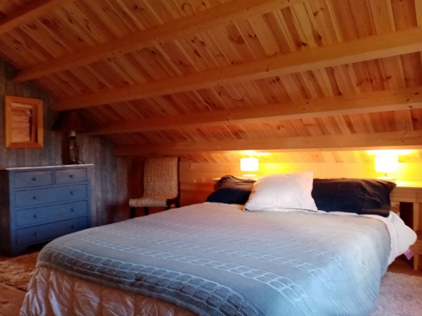 À l'étage : 2 couchages de 160x200, 1 couchage de 90X200, coin détente, meubles de rangement. Literie de haute qualité, les lits sont faits à votre arrivée. Lit bébé et baignoire, chaise haute sur demande et gratuit.