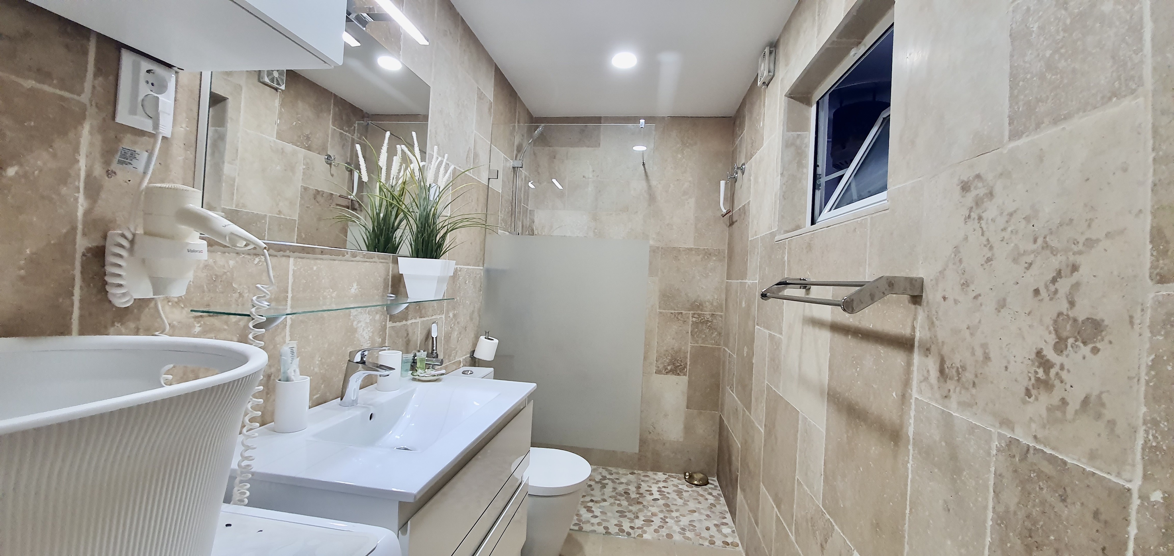 Une suite avec TV, lit Queen Size, salle d'eau, wc