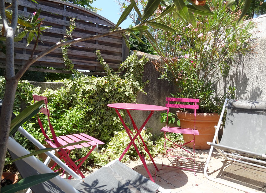 Accueil convivial d'Anne et Louis dans leur charmante maison de village complètement restaurée dans un esprit zen avec des couleurs méditerranéennes.