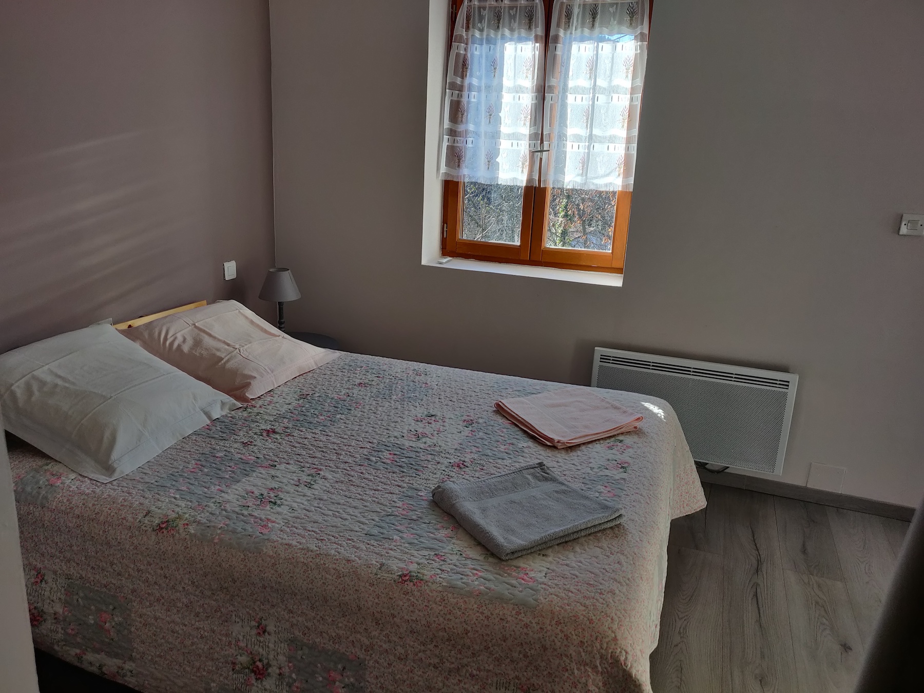 Dans la chambre lilas, vous pourrez profiter de cette suite familiale qui dispose d'un lit double en 140cm, d'un salon, d'une salle d'eau et wc privatifs et séparés.