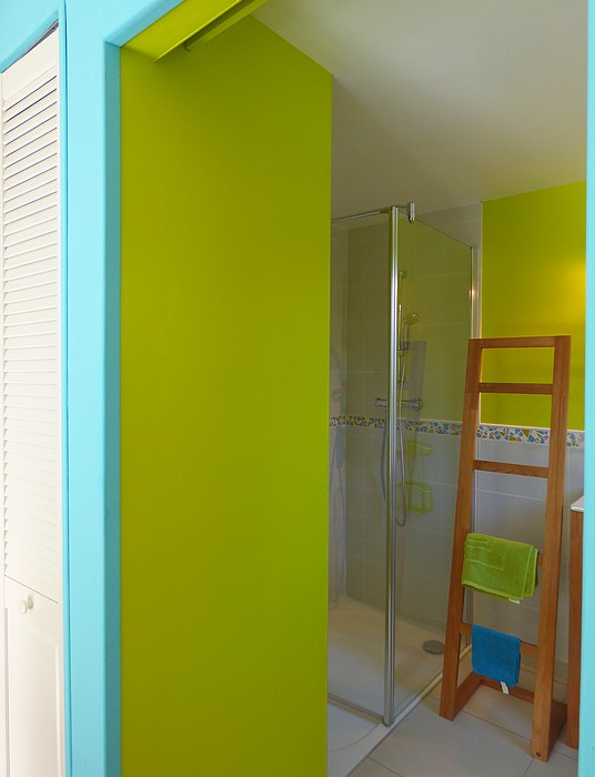 Les salles d'eau attenantes aux chambres comprennent une grande douche, une vasque et un wc. les draps et les serviettes de toilettes sont fournis.