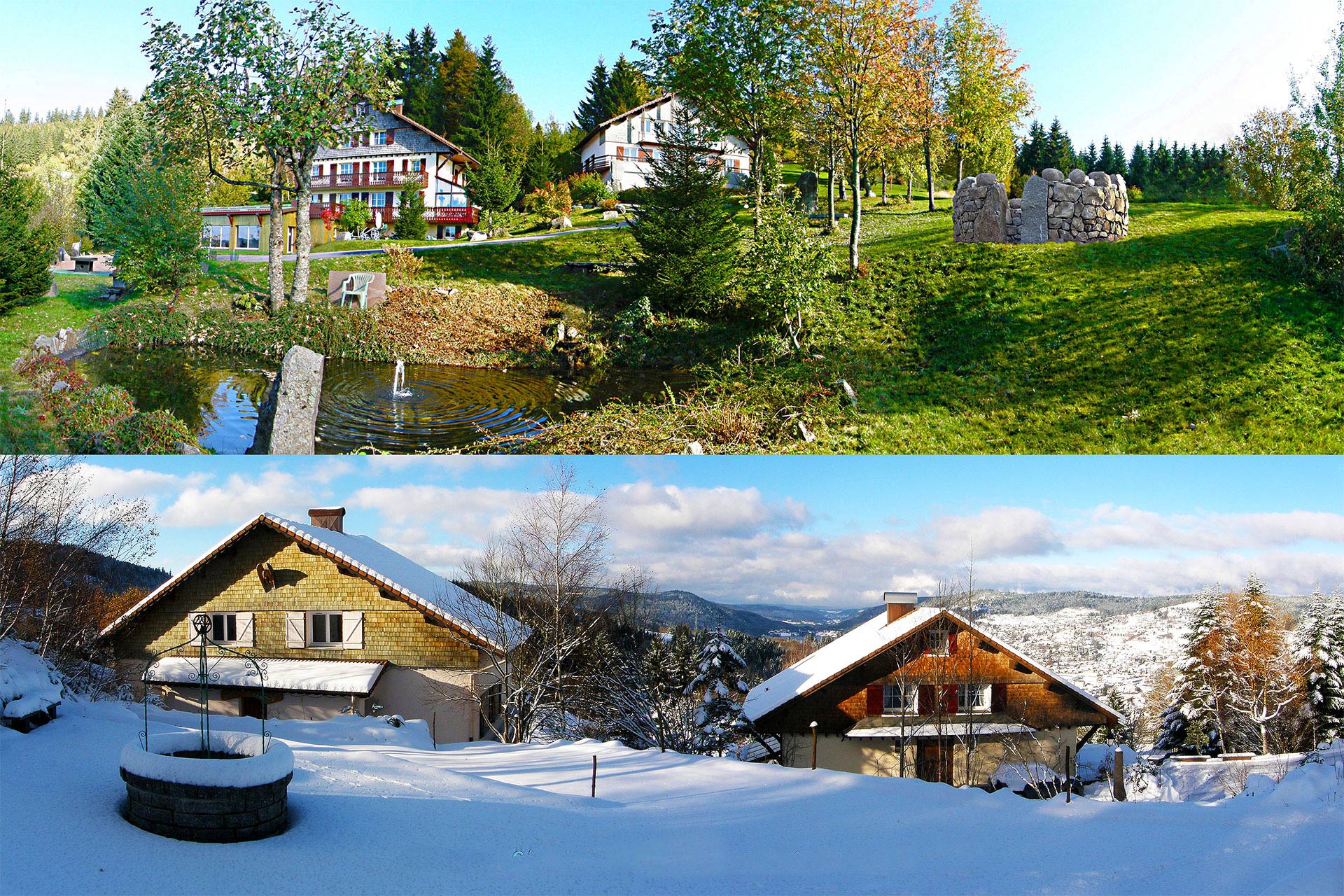Proche des pistes et des sentiers de randonnées, en pleine nature, à 900 mètres d'altitude, dans le parc naturel des Ballons des Vosges.