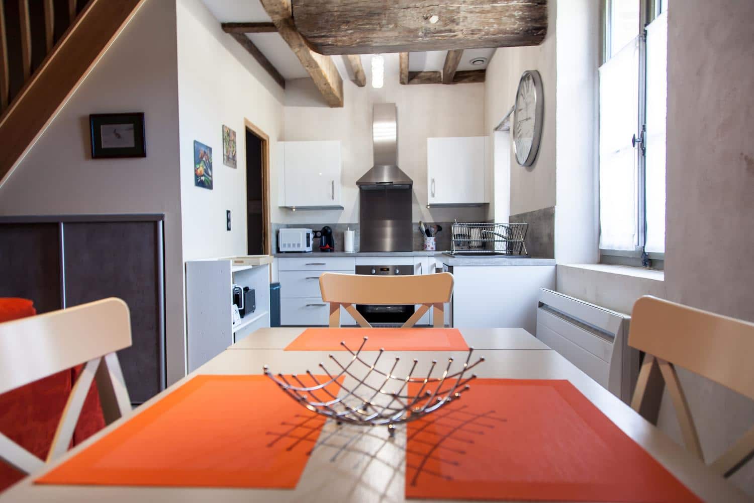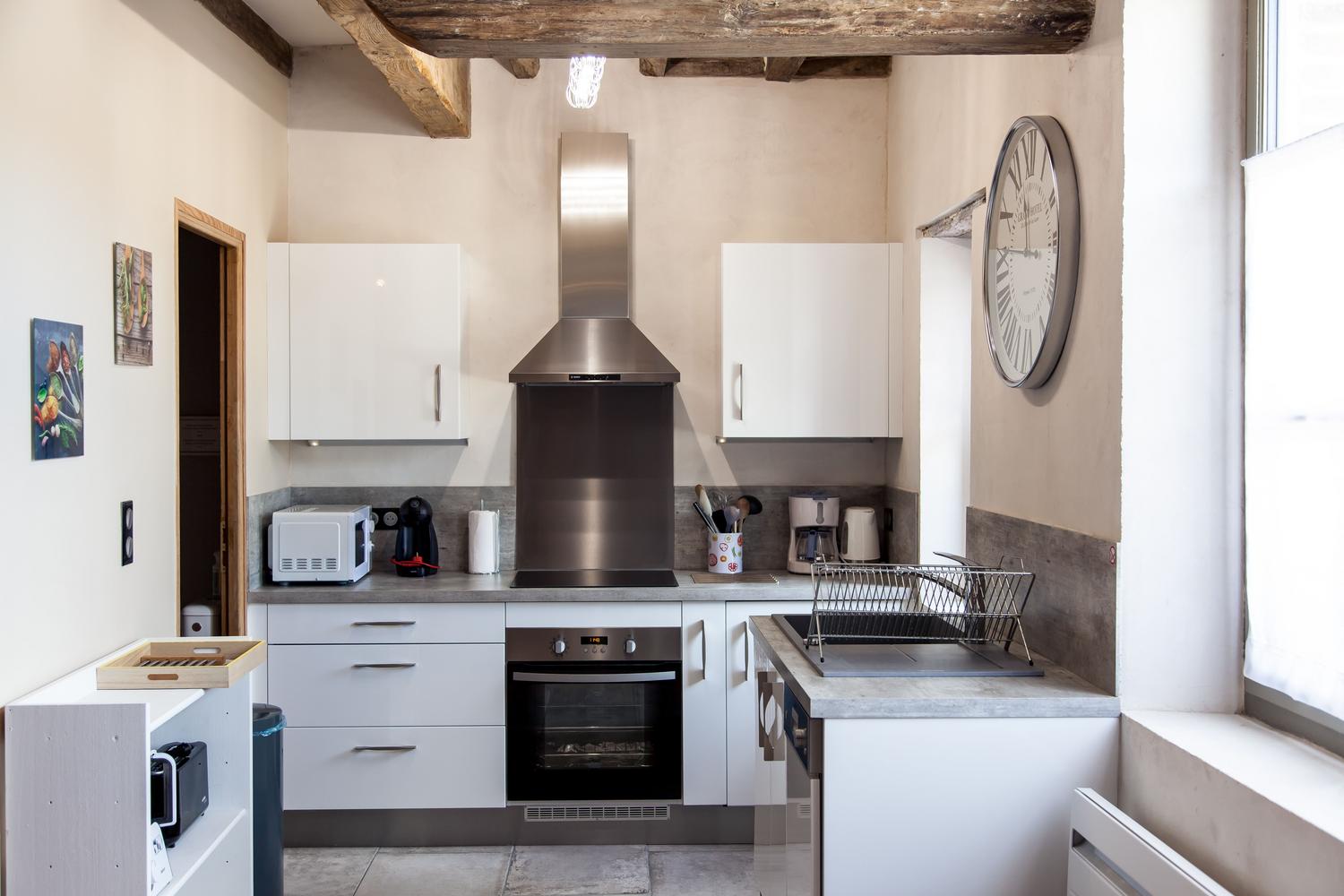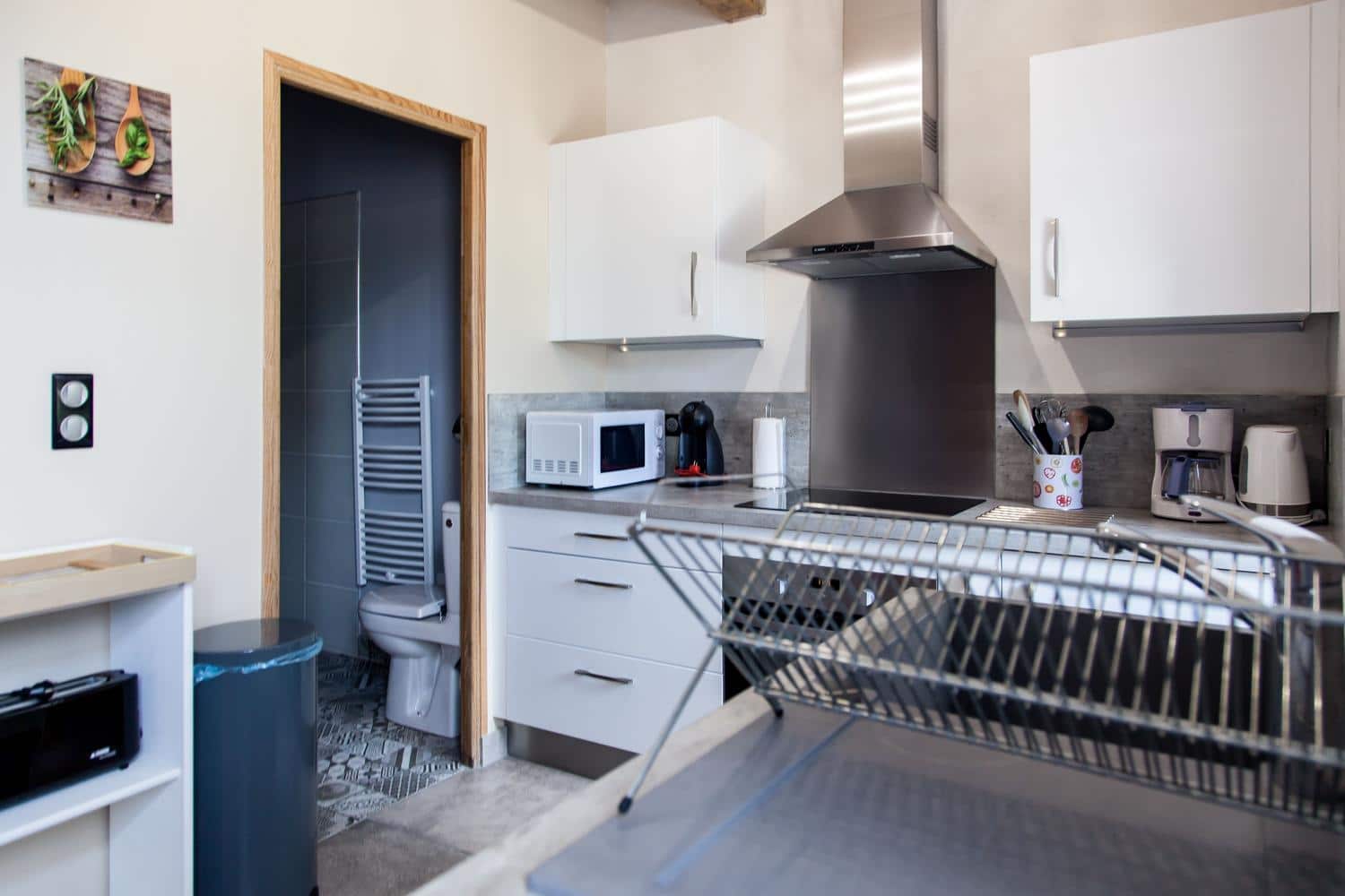 La cuisine américaine est tout équipée : lave-vaisselle, four à pyrolyse, micro-ondes, réfrigérateur, cafetière électrique et une expresso, robot multifonctions, vaisselle, aspirateur… Un lave-linge est à votre disposition dans la salle d'eau.