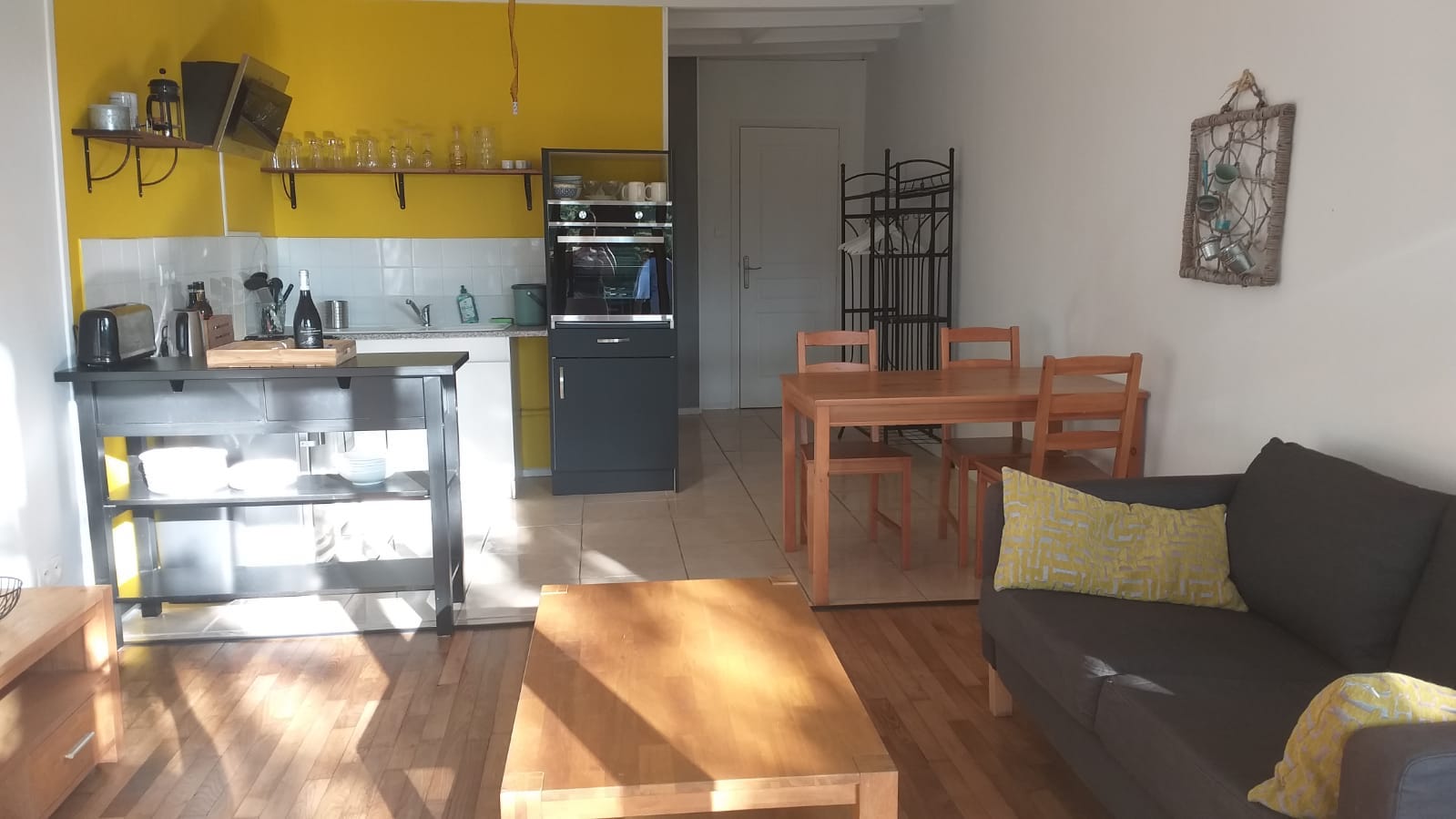 Ce gîte est composé d'une cuisine équipée, d'une chambre avec un lit double 140 cm, une salle d'eau avec douche, lavabo et toilettes dans la salle d'eau.