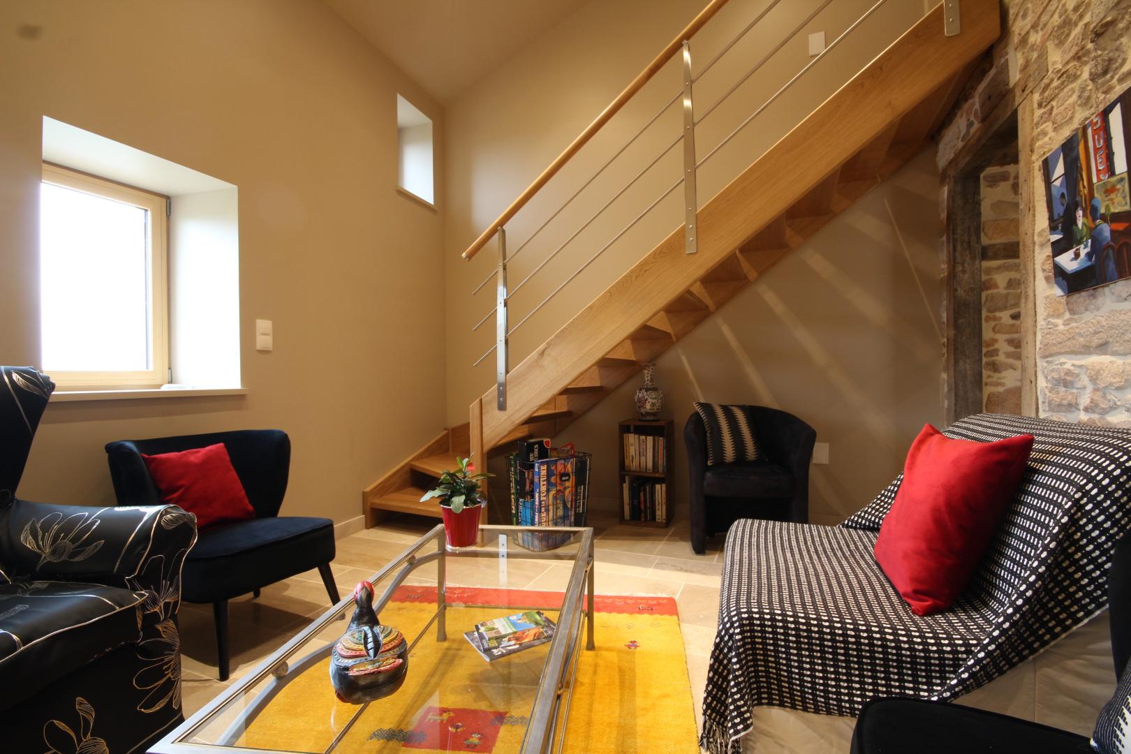 Composition : Maison individuelle sur 2 niveaux mitoyenne à une grange-entrepôt (appartenant aux propriétaires). Chauffage électrique + poêle bois (pellets). Wifi. Rdc : séjour-cuisine-salon (coin salon séparé en pièce « ouverte »), 1 chambre (lit 2 p. 160x200cm), salle d'eau (douche), wc indépendant. 1er étage : 1 chambre (2 lits 1 p. 90x200cm), salle d'eau (douche), wc indépendant. Terrasse en partie abritée. Cour-parking close. Local à vélos. Commerces & services 5 km. Voie verte 7.5 km. Gare TGV Mâcon Loché 7 km.