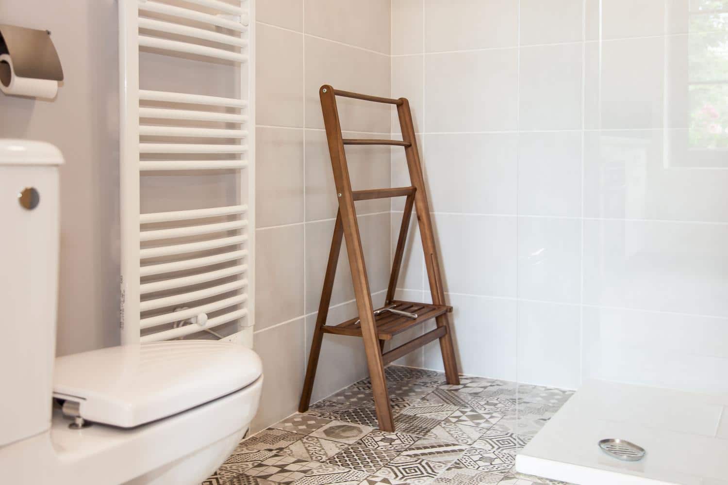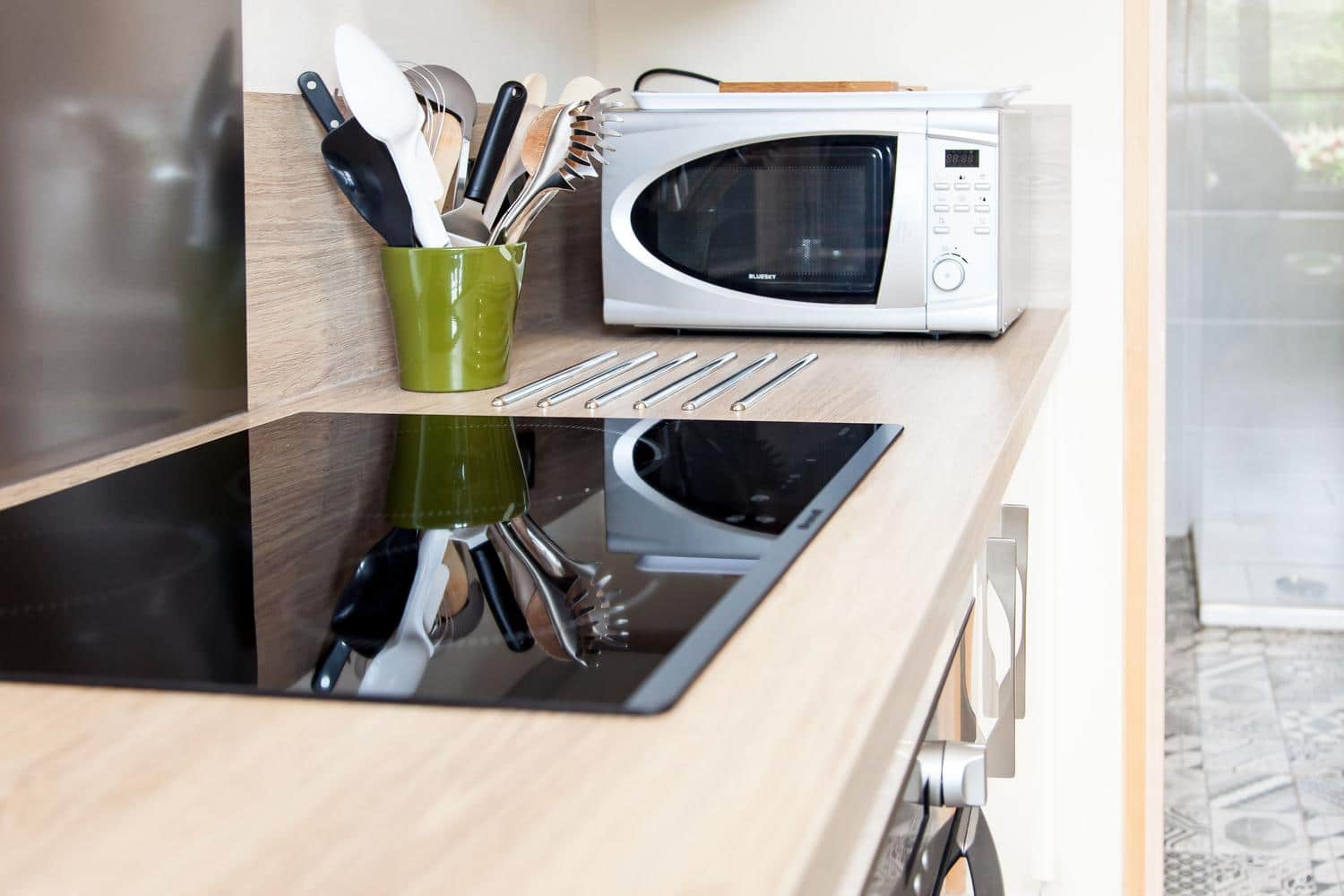 La cuisine américaine est tout équipée : lave-vaisselle, four à pyrolyse, micro-ondes, réfrigérateur, cafetière électrique et une expresso, robot multifonctions, vaisselle, aspirateur… Un lave-linge est à votre disposition dans la salle d'eau.