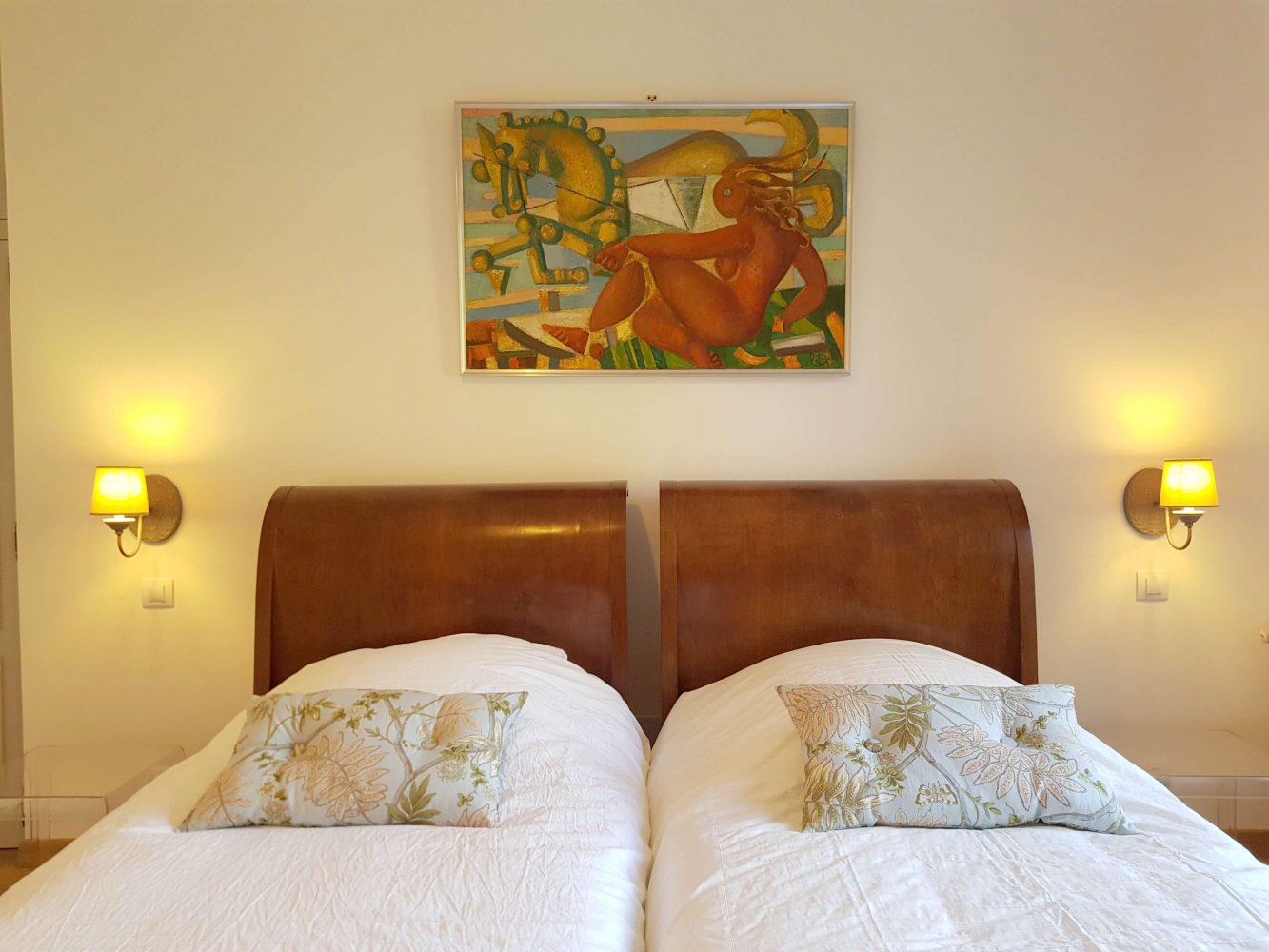 Deux chambres doubles luxueuses et confortables, se partagent l’espace de ce superbe appartement (95m²). En vis-à-vis, un salon lumineux vous attend pour le « farniente ».