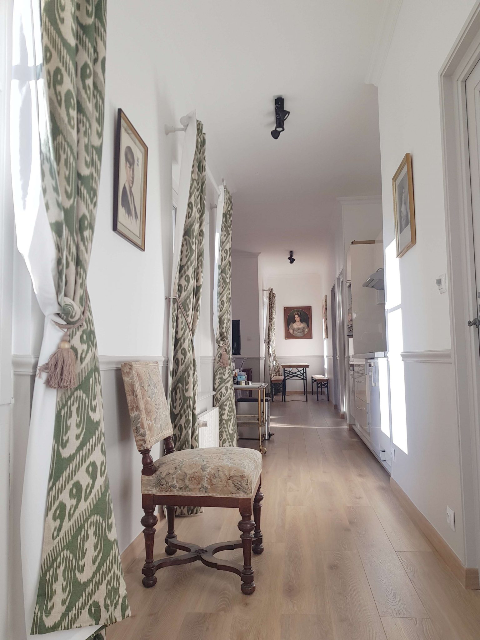 Tableaux anciens et meubles XIXe alternent élégamment avec le style contemporain.
