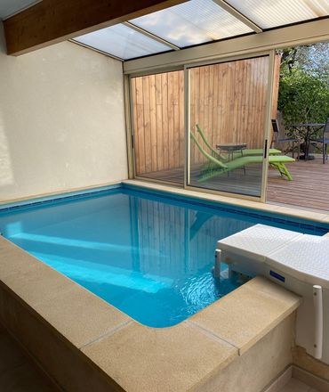 Une piscine intérieure de 10m2 non chauffée fonctionnant pendant la saison estivale - de Mai à Septembre - s'ouvre par des baies vitrées donnant sur une terrasse extérieure et un solarium privatif.