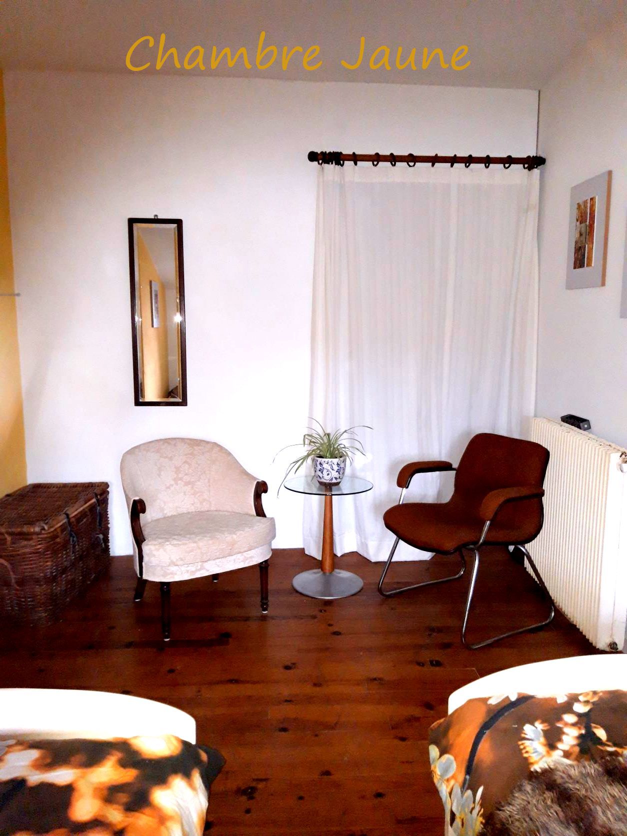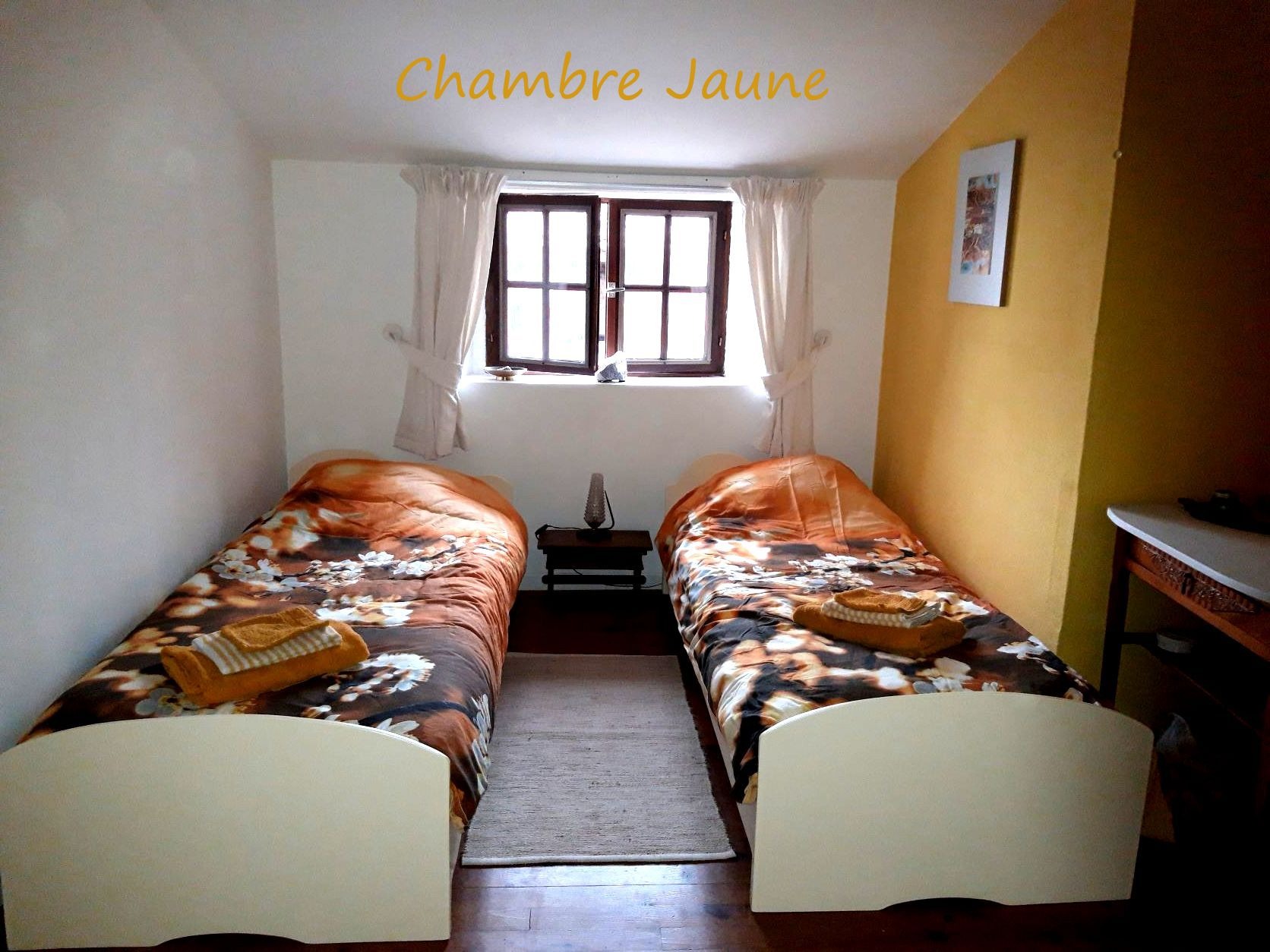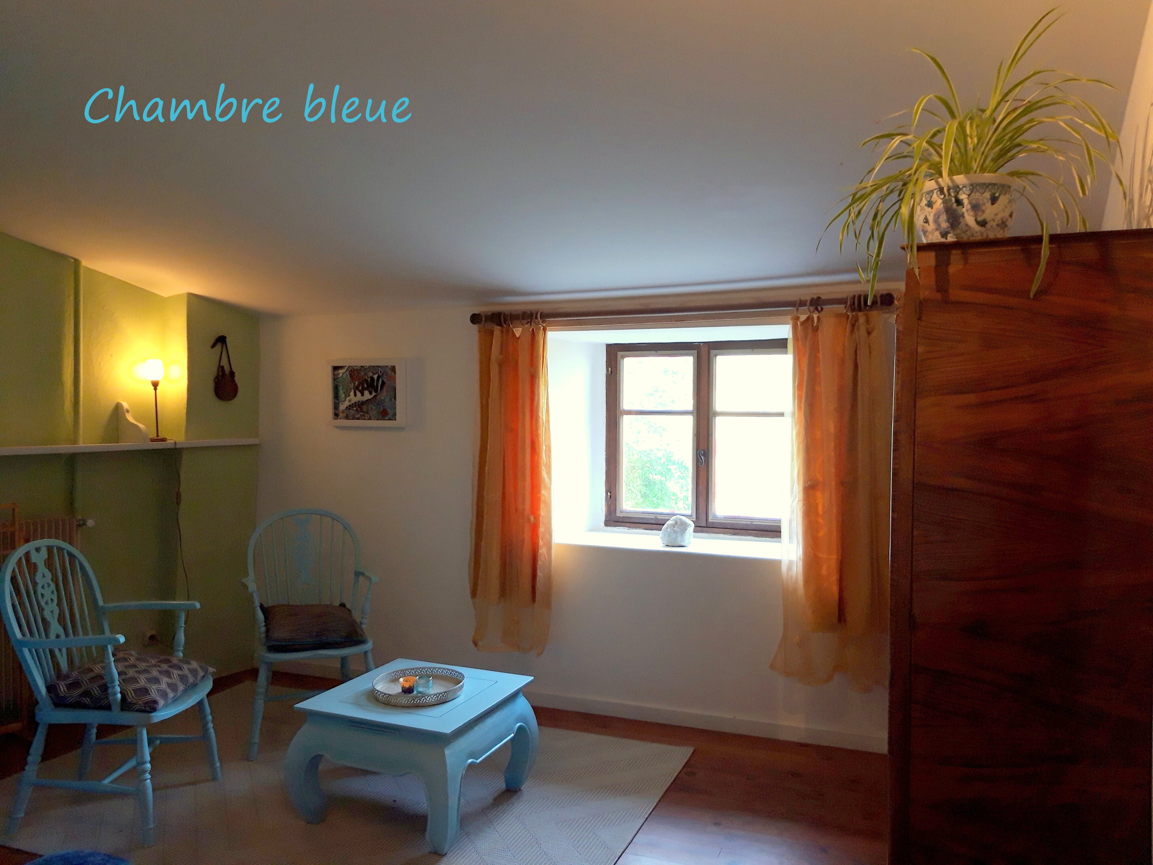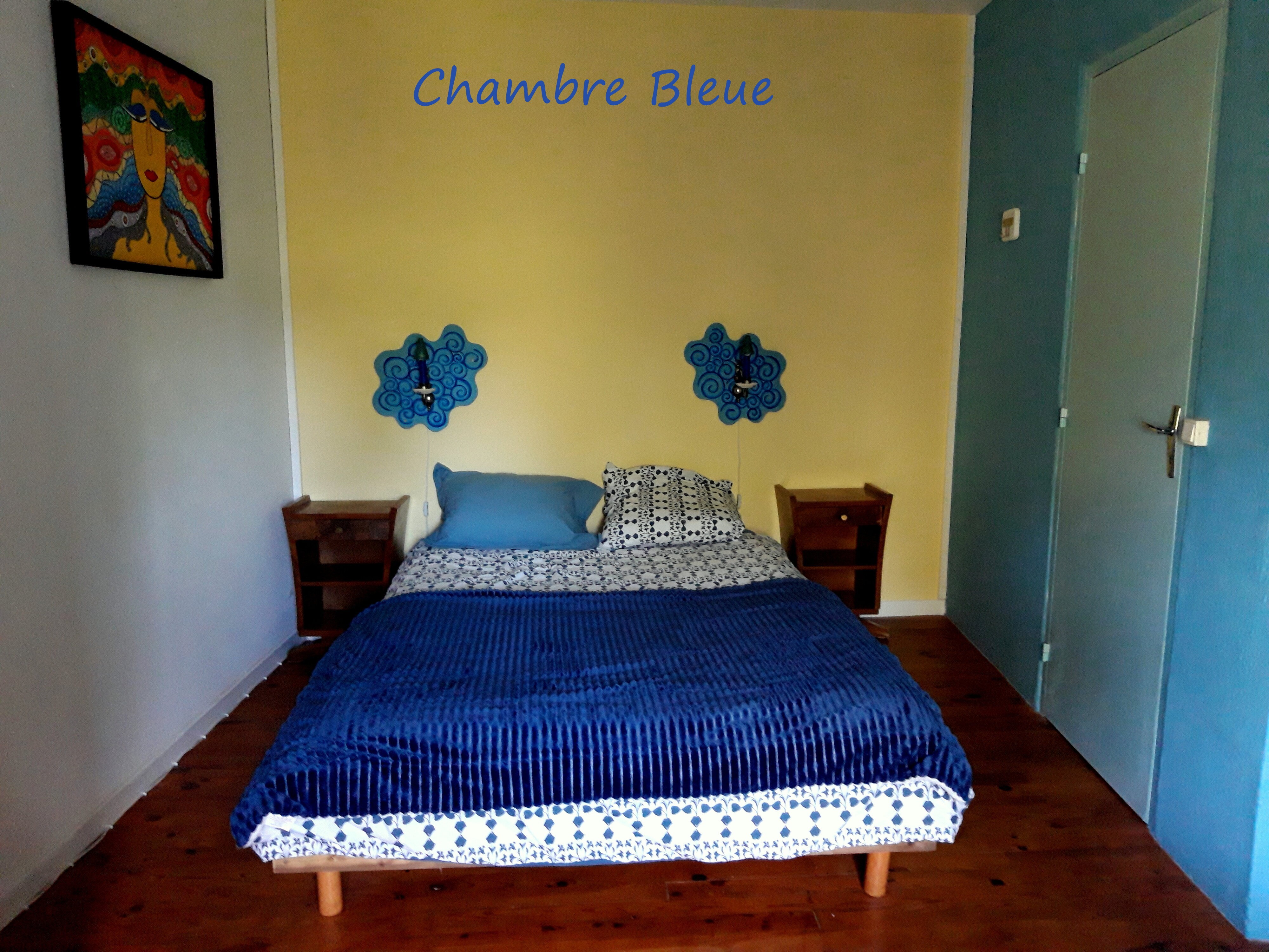 Dans notre maison, on vous propose deux chambres confortables avec salle de bains et toilettes partagées. La chambre Jaune (lien tout en bas du la page) a deux lits simples avec vue sur une rue tranquille. La chambre Bleue a un lit double avec vue sur le jardin.
