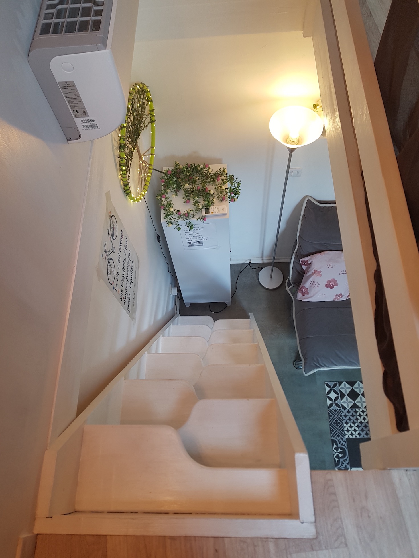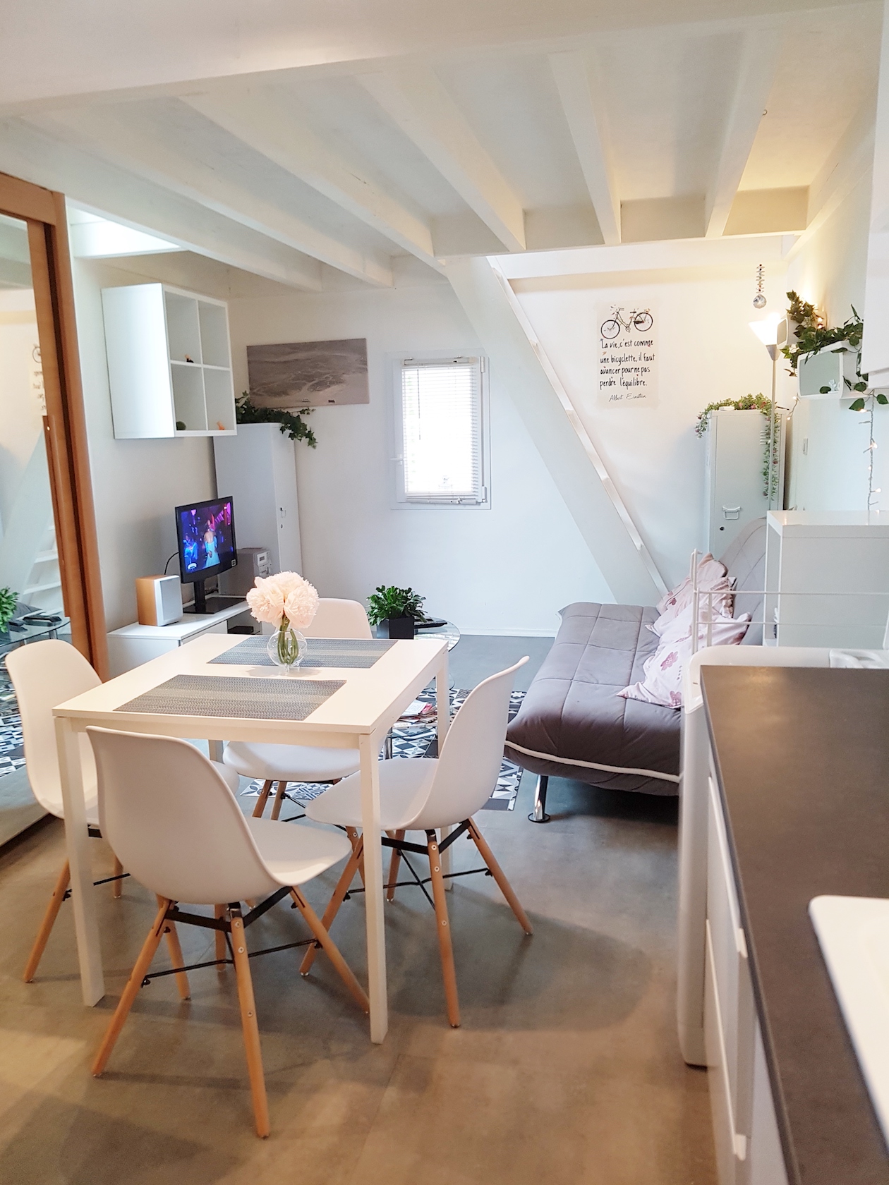 Particulier propose à St Médard en Jalles centre un studio meublé duplex de 34 m² dans une petite maison indépendante, avec climatisation réversible.