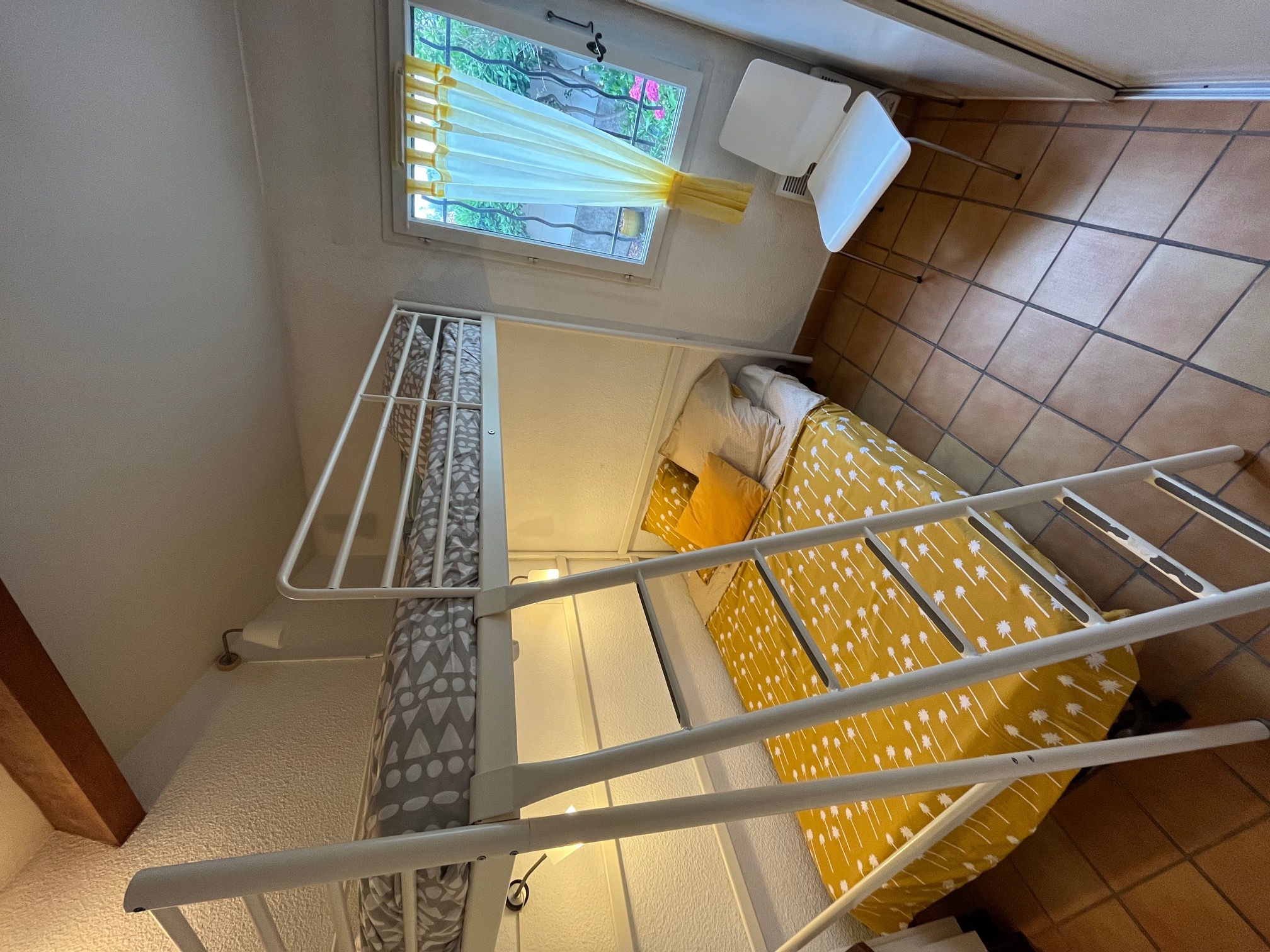 Enfin, deux chambres fermées : La première est composée de deux lits doubles superposés.
