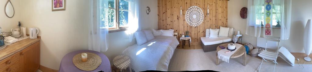 Un séjour en nature dans une chambre/maisonnette indépendante de la résidence principale, avec balcon et vue sur lac. Tranquillité assurée. Pour un séjour en solo ou pour deux personnes sur demande.