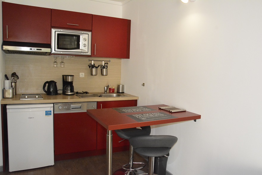 Vous disposerez d'une entrée avec placard, cuisine équipée avec lave-vaisselle, micro-ondes, plaque vitro-céramique, et réfrigérateur.