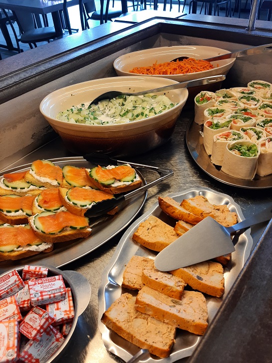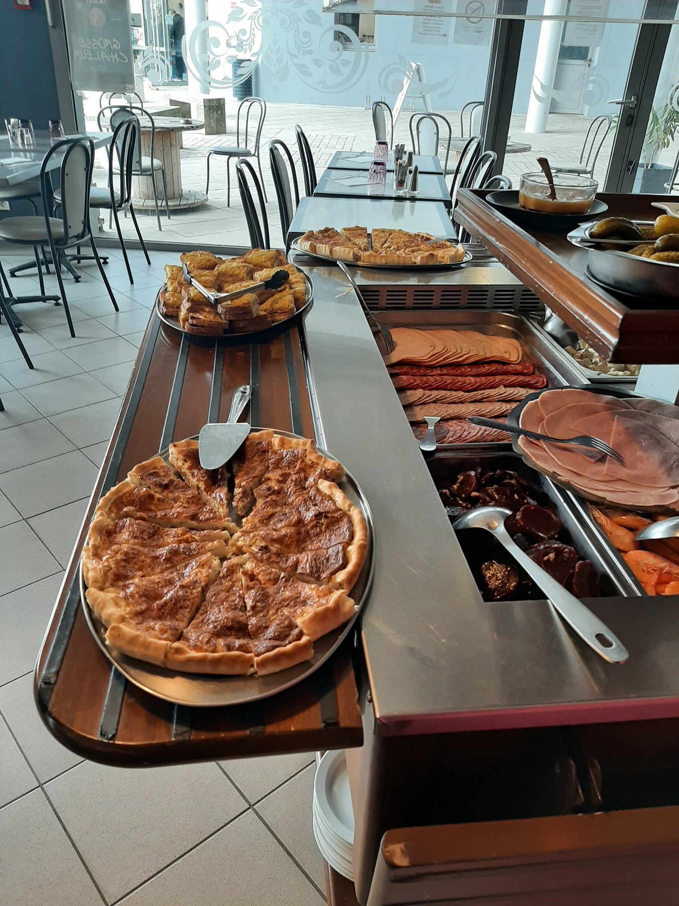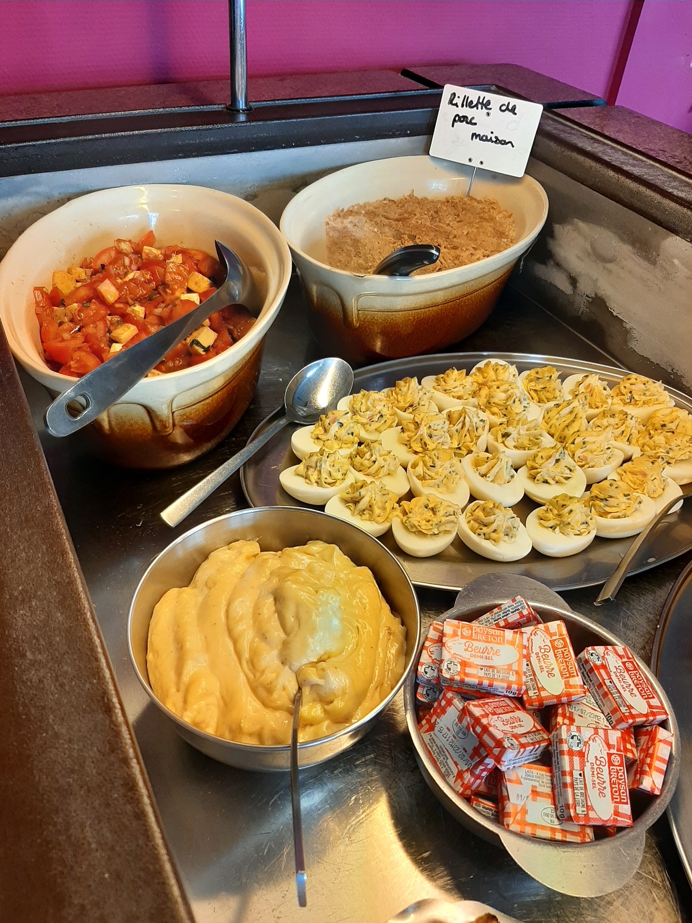 Buffet d'entrées, plat, fromage, dessert, café, 1/4 de vin. (15 euros)